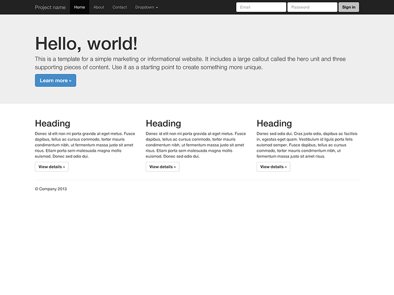 Copy and paste the HTML from below to get started with a bare bones Bootstrap document.